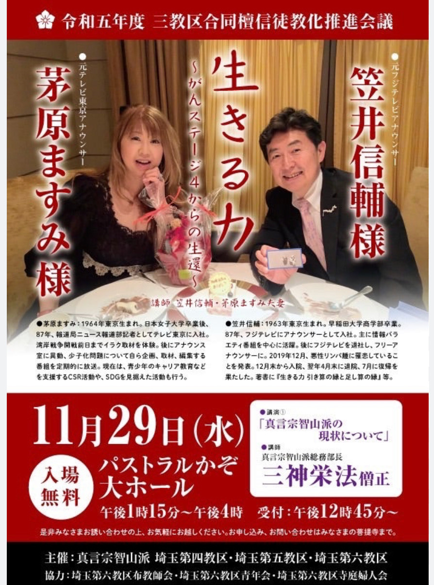 11月29日(水)埼玉県で夫婦で講演会を行います